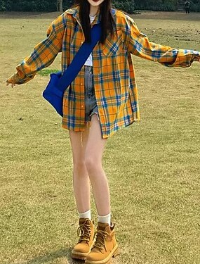 בגדי ריקוד נשים חולצה משובץ יום יומי שרוול ארוך צווארון חולצה חולצות רגילות חגים ליציאה כפתורים צהוב סתיו
