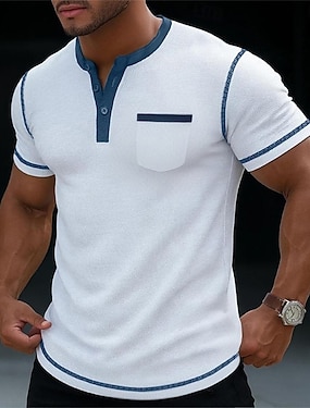 בגדי ריקוד גברים חולצה קצרה חולצת הנלי טי שירטס חולצה עם שרוולים קצרים שרוולים קצרים הנלי קיץ קולור בלוק אופנתי מעצב בסיסי כיס חופשה רחוב ליציאה שחור לבן כחול נייבי חולצה עליונה לגברים