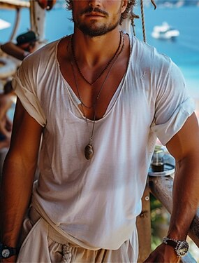 בגדי ריקוד גברים חולצה קצרה טי שירטס חולצה עם שרוולים קצרים טופ טי שרוולים קצרים צווארון V קיץ אחיד אופנתי מעצב בסיסי קלאסי חופשה רחוב ליציאה בז' חולצה עליונה לגברים