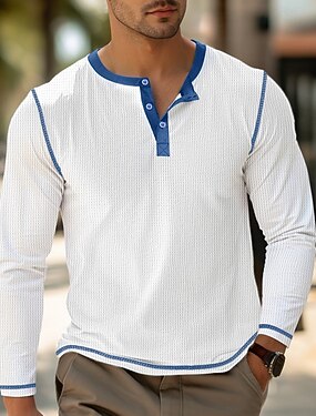 בגדי ריקוד גברים חולצה קצרה חולצת וופל טופ טי קולור בלוק הנלי רחוב חופשה שרוול ארוך ביגוד אופנתי מעצב בסיסי