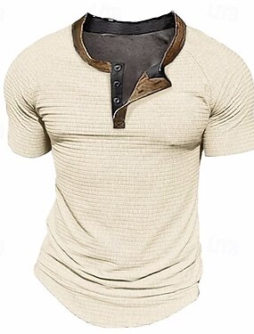 בגדי ריקוד גברים חולצה קצרה חולצת הנלי וופל חולצת הנלי טי שירטס שרוולים קצרים הנלי קיץ צבע אחיד אופנתי מעצב בסיסי כפתורים חופשה רחוב ליציאה שחור כחול נייבי בז' חולצה עליונה לגברים