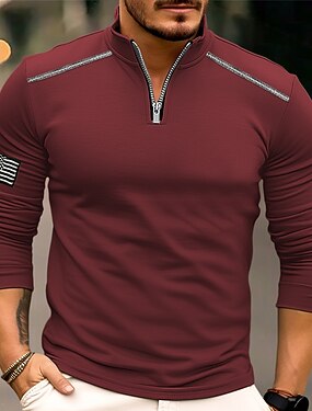 בגדי ריקוד גברים חולצה קצרה חולצת חצי רוכסן טופ טי חולצה ארוכת שרוולים שרוול ארוך רבע מיקוד קיץ & אביב דגל לאומי אופנתי מעצב בסיסי כיס חופשה רחוב ליציאה אפור כהה כחול אדום חולצה עליונה לגברים