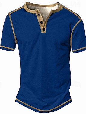 בגדי ריקוד גברים חולצה קצרה חולצת הנלי טי שירטס שרוולים קצרים וינטאג' מעצב בסיסי קלסי כפתור למטה הנלי בָּחוּץ יומי ספורט קיץ ירוק בהיר כחול רויאל פול חולצת טריקו של הנלי