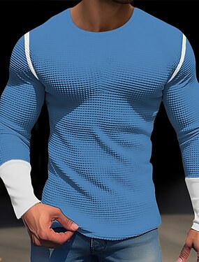 בגדי ריקוד גברים חולצת וופל חולצה קצרה טופ טי חולצה ארוכת שרוולים שרוול ארוך צווארון עגול קצר קיץ & אביב אופנתי מעצב בסיסי חם חופשה יום יומי\קז'ואל תלתן חולצה עליונה לגברים