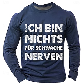 חולצת טי גרפית עם שרוולים ארוכים לגברים סיסמת גרמנית מצחיקה 'כשאלוהים יצר אותי הוא חייך וחשב שזה יהיה כיף'