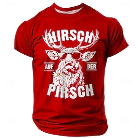 בגדי ריקוד גברים סלנג מצחיק German צבי חולצה קצרה שרוולים קצרים חולצה קצרה הדפסת תלת מימד צווארון עגול קצר חולצה אופנתי יומי רחוב יומי שחור אודם פול קיץ אביב ביגוד S M L XL XXL XXXL