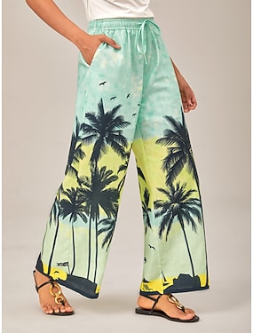 בגדי ריקוד נשים רגל רחבה באורך מלא מותניים גבוהים אלגנטית בוהמיה חופשה קזו'אל יומי חופשת חוף ירוק בהיר קיץ XS S M
