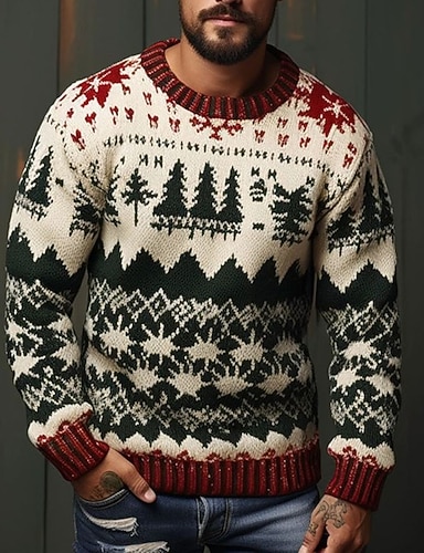 עץ חג המולד גיאומטריה רגיל הדפס גברים סריגה סוודר סוודר מגשר סריגים חיצוני חופשה יומית סוודרים עם שרוולים ארוכים יין לבן כהה נייבי סתיו חורף s m l סוודרים