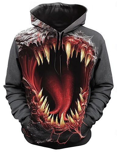 חג ליל כל הקדושים בגדי ריקוד גברים 3D פה קפוצ'ונים טרנינג פאנק מוּגזָם שרוול ארוך צווארון עגול קצר מועדונים לבוש רחוב שחור אפור שרוך סתיו חורף מְעַצֵב