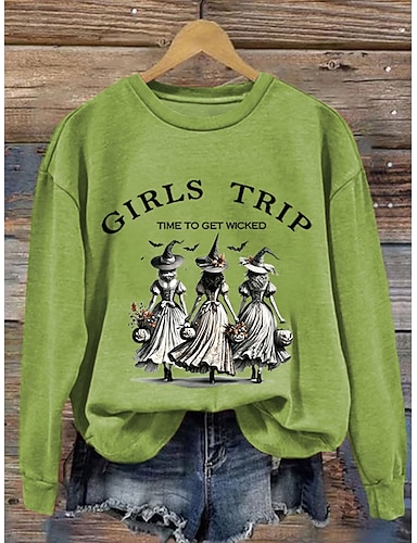 בגדי ריקוד נשים סווטשירטים גראפי אותיות מְכַשֵׁפָה יום יומי שרוול ארוך צווארון עגול קצר חולצות רגילות רחוב לבוש ליום קזו'אל דפוס לבן כתום תלתן סתיו חורף