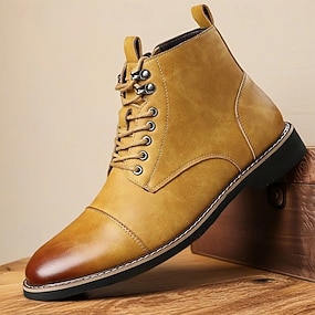 מגפוני קרסול לגברים מעור מלאכותי עם שרוכים – נעלי עסק קלאסיות רשמיות למשרד ולאירועים ערב
