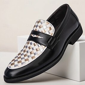בגדי ריקוד גברים נעליים ללא שרוכים פני לופרס כושר וחיטוב הליכה יום יומי עור PU נוח מונע החלקה לואפר לבן + שחור שחור אביב