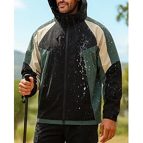 בגדי ריקוד גברים רקמה ג'קט מעיל גשם מעיל מעטפת עמיד למים מוגן מגשם קל משקל יום יומי ספורט חוץ מחנאות וטיולים רקום כיסי צד חזית רוכסן סתיו חורף עם קפוצ'ון שרוול ארוך חאקי ירוק צבאי