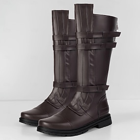 מגפי ברך חומים לגברים עם רצועות - סגנון מחוספס עם רצועות נועזות, מושלם ליציאות קז'ואל וללבוש רחוב אופנתי