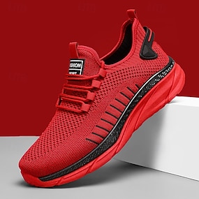 נעלי ספורט אדומות מרשת נושמות לגברים - נעלי ריצה קלות משקל ללבישה יומיומית, ספורט וכושר בחוץ