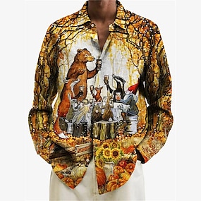 חג ההודיה בגדי ריקוד גברים חיה חולצה חולצה מערבית חולצת בוקרים שרוול ארוך יום יומי לבוש יומיומי ליציאה סתיו חורף צווארון מתקפל כיס דפוס כפתור למטה צהוב