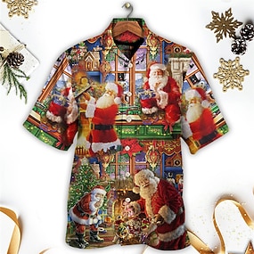 חולצת חג המולד לגברים סנטה קלאוס הוואית סנטה קלאוס קז'ואל רחוב קז'ואל יומי סתיו קובני צווארון קובני שרוולים קצרים חולצה כחולה s m l