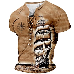 בגדי ריקוד גברים גוגולות ספינה פיראט חולצת הנלי הדפסת תלת מימד אופנתי רטרו\וינטאג' יום יומי חופשה רחוב יומי אביב קיץ פול תלתן חאקי אפור הנלי חולצת טריקו של הנלי