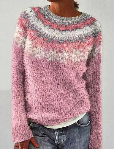 בגדי ריקוד נשים סוודר יומי יום יומי גיאומטרי מצולע צווארון עגול קצר סרוג דפוס שרוול ארוך חולצות רגילות לִסְרוֹג בָּחוּץ סוף שבוע ורוד מסמיק סתיו חורף