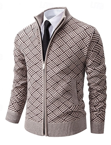 בגדי ריקוד גברים קרדיגן סוודר רוכסן שמנמן לִסְרוֹג רגיל רוכסן כיס גיאומטרי צווארון עומד(סיני) סריגים אלגנטית בית עבודה ביגוד בישוף אביב סתיו שחור כחול נייבי M L XL
