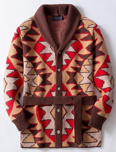 בגדי ריקוד גברים סוודר אקארד סוודר קרדיגן מעיל קרדיגן סוודר סרוג מצולע סריגה לִסְרוֹג חוּלצָה סרוג וינטאג' צווארון צעיף (שאל) אופנתי קלסי לבוש יומיומי פגישה (דייט) ביגוד סתיו חורף חום M L XL