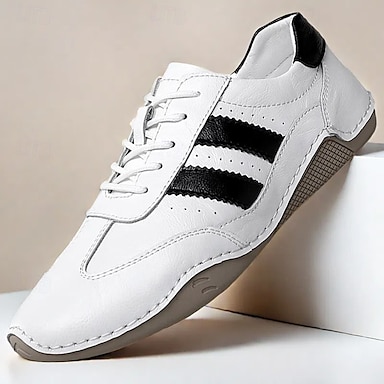 נעליים לבנים לגברים - נעלי עור מלאכותיות קלות משקל עם סוליה מרופדת ללבוש יומיומי
