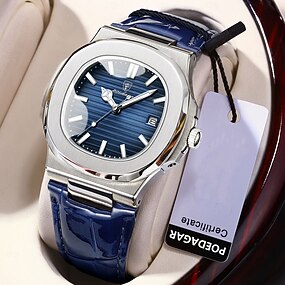 שעון גברים יוקרתי מרובע תצוגת תאריך עמיד במים מואר עור איכותי שעון קוורץ מודרני