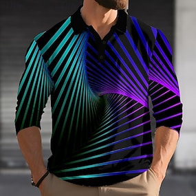 בגדי ריקוד גברים 3D גאומטרי פּוֹלוֹ שרוול ארוך חולצות פולו דש יום יומי בָּחוּץ רחוב בגדי ספורט ומנוחה לבוש יומיומי הדפסת תלת מימד כפתורים אביב סתיו חורף כחול אגם אודם תלתן