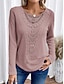 בגדי ריקוד נשים חולצה צבע אחיד אלגנטית בוהמיה וינטאג' שרוול ארוך צווארון עגול קצר חולצות רגילות עבודה יומי תחרה רקום תחרה אשליה ורד מאובק פול כתום בז' אביב סתיו חורף אביב, סתיו, חורף, קיץ