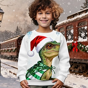 חג המולד בנים תלת מימד דינוזאור טרנינג שרוול ארוך אביב סתיו אופנתי בסיסי ילדים 4-12 שנים צווארון עגול קצר בָּחוּץ קזו'אל יומי רגיל