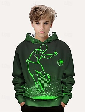 בנים תלת מימד כדורגל קפוצ'ון Pullover שרוול ארוך הדפסת תלת מימד סתיו חורף אופנתי סגנון רחוב מגניב ילדים 3-12 שנים בָּחוּץ קזו'אל יומי רגיל