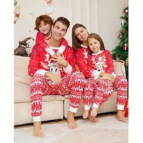 משפחה פיג'מות דפוס חג המולד בית דפוס אודם שרוול ארוך פעיל תלבושות תואמות