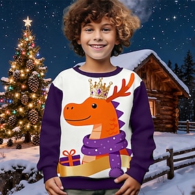 חג המולד בנים תלת מימד דינוזאור טרנינג שרוול ארוך אביב סתיו אופנתי בסיסי ילדים 4-12 שנים צווארון עגול קצר בָּחוּץ קזו'אל יומי רגיל