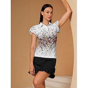בגדי ריקוד נשים חולצת POLO לבן ללא שרוולים צמרות פרחוני נשים בגדי גולף בגדי תלבושות ללבוש ביגוד