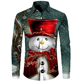חג המולד בגדי ריקוד גברים איש שלג פתית שלג מתנת חג המולד חולצה חולצה עם כפתורים שרוול ארוך מצחיק בָּחוּץ חגים אביב סתיו צווארון מתקפל הדפסת תלת מימד חולצות צווארון אדום 1 אודם