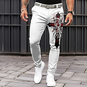 חג המולד בגדי ריקוד גברים חג מולד חליפות מכנסיים מותן בינוני יום יומי בגדי ערב למסיבה רוכסן כיס קיץ אביב סתיו הדפסת תלת מימד תלתן