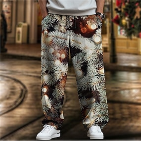 עץ חג המולד יום יומי בגדי ריקוד גברים הדפסת תלת מימד מכנסי טרנינג ספורטאים מכנסיים בָּחוּץ רחוב יום יומי\קז'ואל חג המולד פוליאסטר צהוב אדום ירוק S M L מותן בינונית גְמִישׁוּת מִכְנָסַיִים