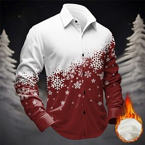 חג המולד פתית שלג חולצת גברים מזדמנים ללבוש יומיומי יוצא הסתיו & חורף סבבה עם שרוול ארוך אדום כהה s, m, l חולצת בד מתיחה 4 כיוונים