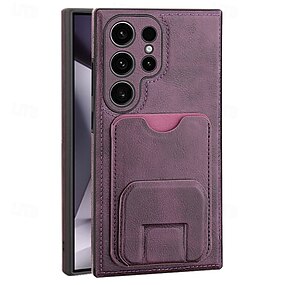 טלפון מגן עבור S25 S24 S24 FE S23 S22 S21 Ultra Plus A55 5G A35 5G A25 A15 כיסוי אחורי עם מעמד חריץ לכרטיס עמיד בזעזועים רטרו עור PU