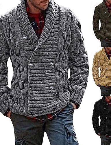 בגדי ריקוד גברים סוודר קרדיגן סוודר קצוץ סוודר סרוג מצולע לִסְרוֹג חולצות רגילות כפתורים אחיד דש שאל אופנתי קלסי חופשה לבוש יומיומי ביגוד סתיו חורף כחול נייבי חום M L XL
