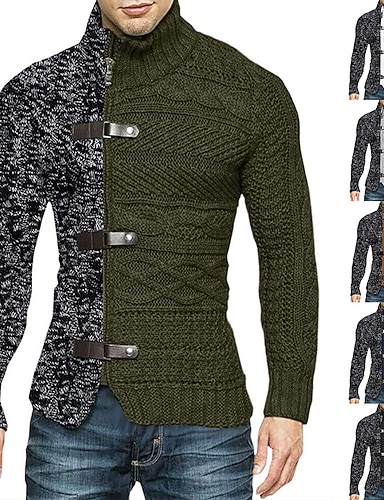 בגדי ריקוד גברים סוודר קרדיגן סוודר שמלה סוודר פליסה מצולע לִסְרוֹג חתוך סרוג קולור בלוק עומד חימומים מודרני עכשווי לבוש יומיומי ליציאה ביגוד חורף קיץ & אביב פול חאקי S M L
