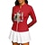 חג המולד בגדי ריקוד נשים גיאומטרי מכתב ומספר חולצת ספורט חולצת טניס שרוול ארוך רוכסן פרחוני UPF50+ עמידות UV גמישות גבוהה פתילת לחות נושם כדור עף טניס גולף צווארון גבוה עומד חולצה סווטשירט אדום