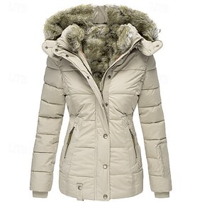 בגדי ריקוד נשים מעיל חורף מעיל קפוצ'ון שמור על חום הגוף נוח מכפלת פרווה טלאים רוכסן יום יומי קולור בלוק חופשה לבוש יומיומי ליציאה סוף שבוע רגיל עם קפוצ'ון מונח בצורה רפויה שרוול ארוך הלבשה עליונה