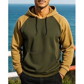 בגדי ריקוד גברים קפוצ'ון ירוק צבא כחול נייבי חום חאקי עם קפוצ'ון קולור בלוק טלאים כיס ספורט וחוץ יומי חגים פוליאסטר סגנון רחוב בסיסי יום יומי קיץ & אביב ביגוד קפוצ'ונים חולצות טריקו שרוול ארוך