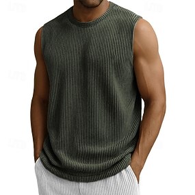 בגדי ריקוד גברים עליונית טנק גופייה גופיה חולצה ללא שרוולים ללא שרוולים צווארון עגול קצר קיץ אחיד אופנתי מעצב בסיסי קלאסי סרוג חופשה רחוב ליציאה שחור לבן ורוד מסמיק חולצה עליונה לגברים
