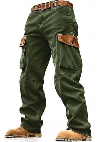 בגדי ריקוד גברים מכנסי קרגו מכנסיים מכנסי זמש מלאכותי מִכְנָסַיִים כיס מרובה אחיד קומפורט בָּחוּץ קזו'אל יומי חופשה אופנתי שחור ירוק צבא מיקרו-אלסטי