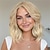 פאות בצבע חום קרמל באורך 14 אינץ' לנשים - פאה גלית באורך הכתפיים עם קו שיער תחרה חתוך מראש, חלק אמצעי, בוב גלי טבעי, סיבים סינתטיים עמידים בחום, ליום יום ומסיבות