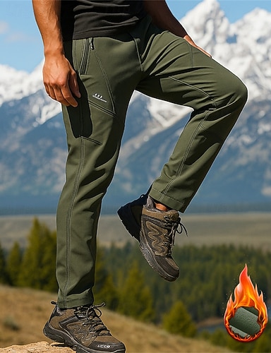 בגדי ריקוד גברים מכנסיים לטיולי הליכה מכנסי פליסה מכנסיים תרמיים מכנסיים עמידים למים חורף חיצוני רגיל שמור על חום הגוף עמיד תחתיות כיס עם רוכסן שחור ירוק צבא מחנאות וטיולים ריצה S M L XL XXL