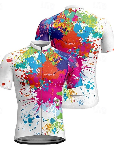בגדי ריקוד גברים חולצת ג'רסי לרכיבה גאומטרי שרוולים קצרים אופנייים טי טי ג'רזי צמרות עם 3 כיסים אחוריים רכיבת הרים ייבוש מהיר נושם ספורט ורוד כחול כתום ביגוד