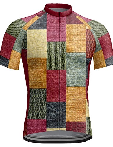 בגדי ריקוד גברים חולצת ג'רסי לרכיבה משובץ מעוטר מצחיק שרוולים קצרים אופנייים ג'רזי צמרות עם 3 כיסים אחוריים רכיבת הרים רכיבת כביש ייבוש מהיר עיצוב אנטומי רצועות מחזירי אור כיס אחורי ספורט
